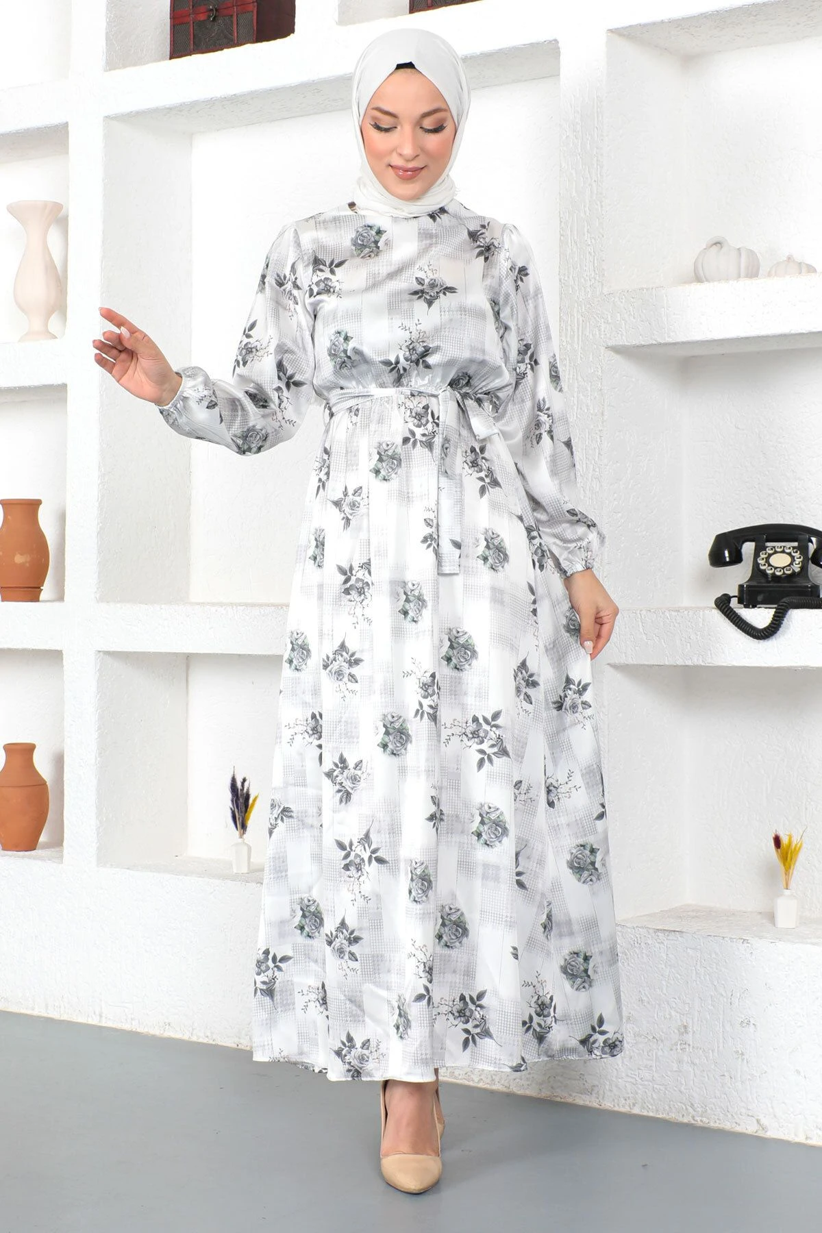 Tesettür Dünyası Kleid – Grau – A-Linie Damen Kleider 697355458